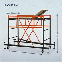 Настил с люком 0.7x1.6 - 1 шт. База с колесами - 2 шт. Диагональ базы - 1 шт. Лестница ограждения - 2 шт. Гантель ограждения - 2 шт. Стяжка ограждения - 4 шт.