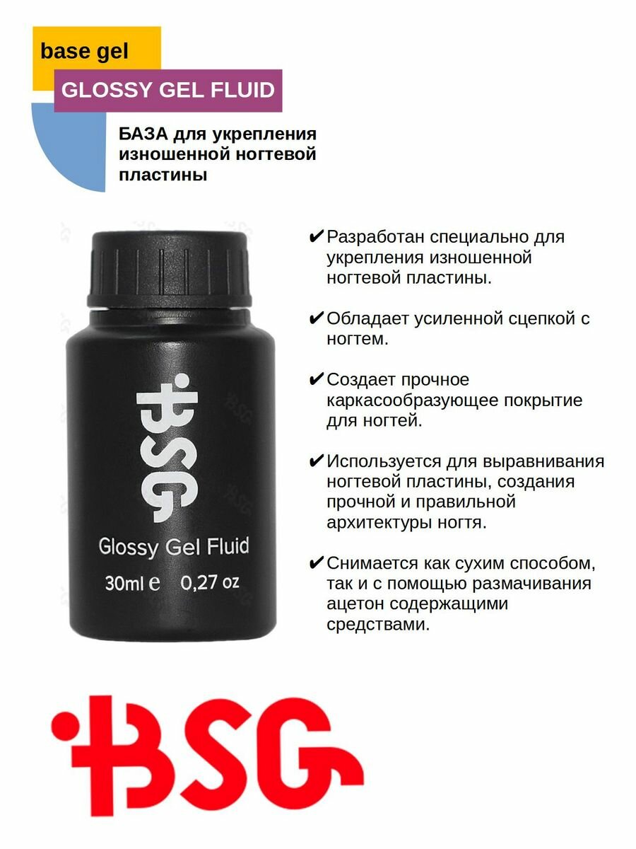 Glossy gel fluid – универсальный базовый гель. Разработан для укрепления изношенной ногтевой пластины. Обладает усиленной сцепкой с ногтем. Создает прочное каркасообразующее покрытие для ногтей. Используется для выравнивания ногтевой пластины, создания прочной и правильной архитектуры ногтя. Снимается как сухим способом, так и с помощью размачивания ацетон содержащими средствами. Внимание! Избегать попадения солнечных лучей даже на закрытые бутылочки (хранить в шкафчике , ящике или на полке без попадания прямых солнечных лучей)