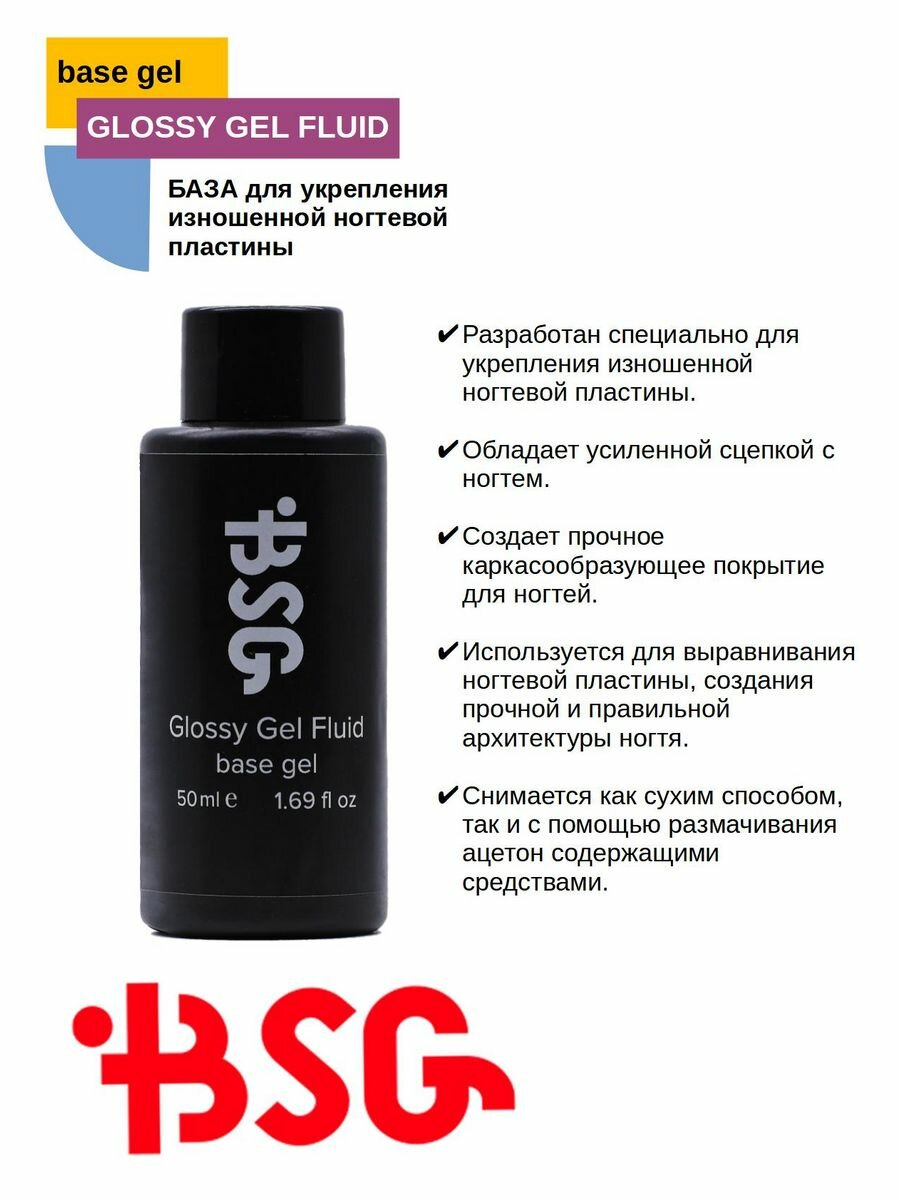 | Способ применения | - подготовьте ноготь - удалите расслоения на свободном крае с помощью бафа или корундовой фрезы. - удалите пыль и обезжирьте ноготь с помощью Nail Prep от BSG (или любым другим средством для обезжиривания) - нанесите небольшое количество (полусухой кистью) Primer от BSG. Дайте подсохнуть на воздухе 40-45 сек. (ВАЖНО! Нельзя использовать другие средства, если нет фирменного Primer, то достаточно просто хорошо обезжирить ноготь) - при любом подозрении на аллергическую реакцию, при повышенной чувствительности кожи и ногтей нельзя наносить Primer BSG. В этом случае советуем обафить ногтевую пластину, тщательно обезжирить ее, нанести тонкий (втирающий) слой базы Glossy fluid и заполимеризовать его в лампе 30 секунд. Далее выполнить выравнивание или нанести еще 1-2 тонких слоя базы. - при работе с нормальными или сухими ногтями Primer BSG может быть заменен на втирающий базовый слой Glossy fluid. - нанесите грунтовочный слой Glossy Gel Fluid (тонкий слой), полимеризуйте 30 секунд в LED/CCFL лампе (мощностью от 24Вт) или 1 минуту в УФ лампе (36Вт). - нанесите моделирущий слой Glossy Gel Fluid. Необходимо набрать достаточное количество геля на кисть и с помощью капли выровнять поверхность ногтя, укрепив зону стресса и создав безупречно гладкую поверхность в форме перевернутого лепестка. Полимеризуйте 30 секунд в LED/CCFL лампе или 1 минуту в УФ лампе. |