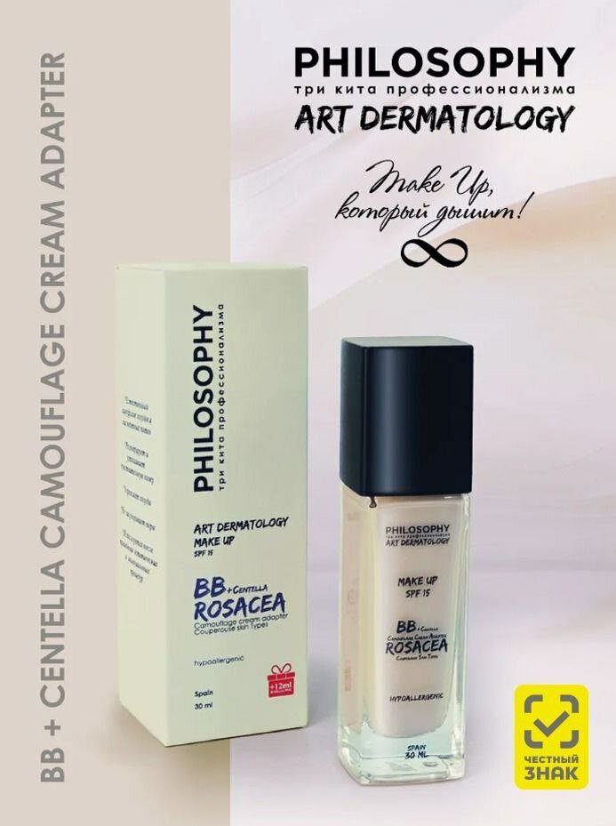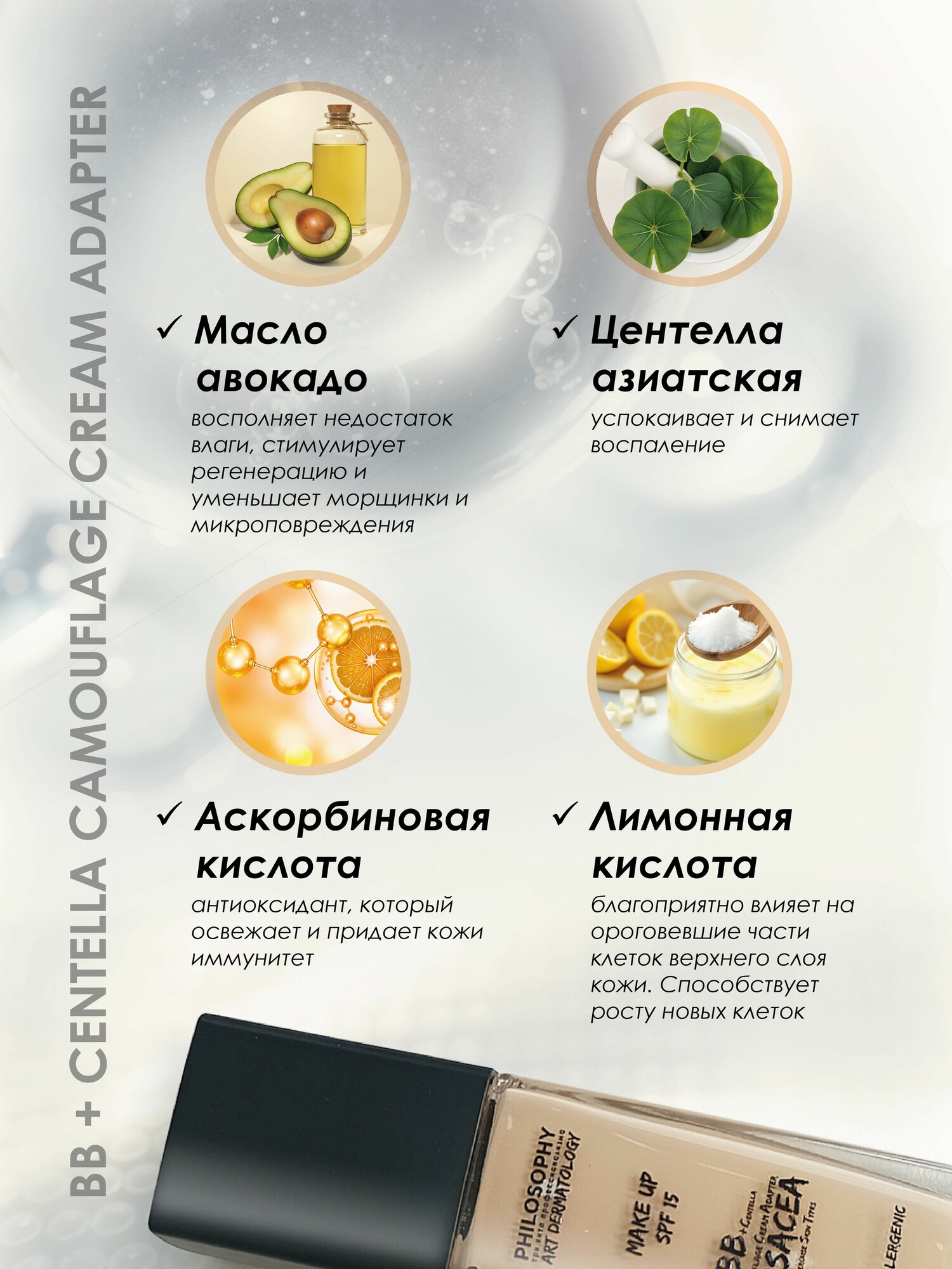 Купить BB Крем для лица Art Dermatology Philosophy + Centella Camouflage Cream Adapter с центелой азиатской для куперозной кожи. 30+12 мл, SPF 15 с доставкой по всей России.