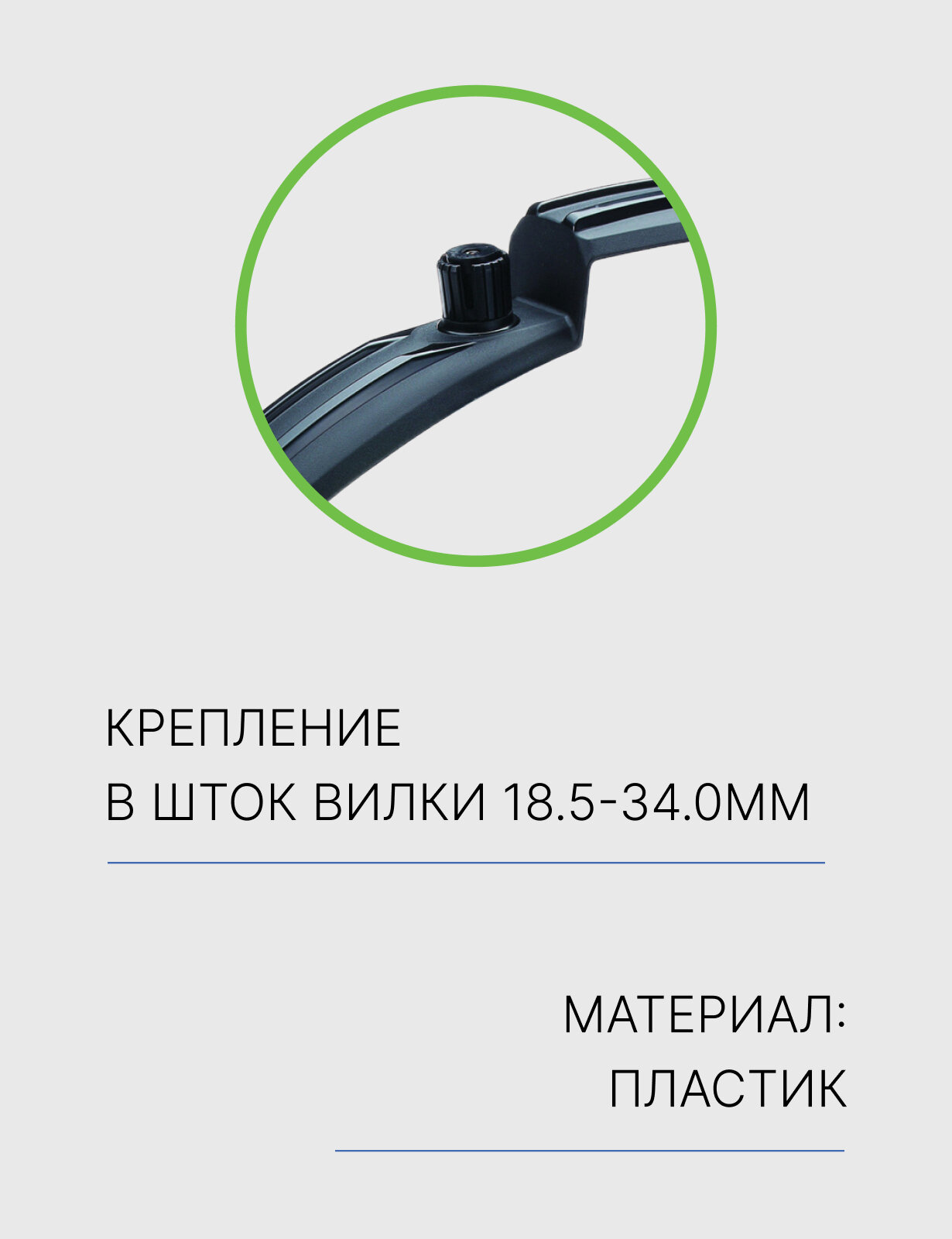 Переднее крыло BBB BFD-14F разработано специально для горных хардтейлов с диаметром колес 27,5 и 29 дюймов. Его широкая форма, дополненная брызговиками, позволяет избежать попадания грязи и водяных брызг. Крыло быстро и легко крепится в шток вилки диаметром от 18,5 до 34,0 мм с помощью распорного механизма TurnFix. Материал - пластик. Цвет: черный.