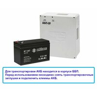 Источник питания ББП-20 предназначен для электропитания устройств и приборов напряжением 12 В. Источник питания предназначен для установки в помещениях, рассчитан на круглосуточную работу и является восстанавливаемым, обслуживаемым изделием. Относится к 0 классу защиты от поражения электрическим током по ГОСТ 12.2.007.0-75.