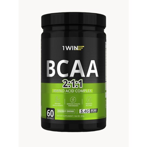 BCAA 2:1:1, вкус Энергетик, 60 порций, Аминокислоты порошок 1WIN (БЦАА), быстрорастворимый