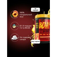 BCAA 9.7 (1044 г), Fit Foods (Mutant, PVL) - комплекс BCAA (аминокислот с разветвленной боковой цепью). Из названия видно сколько содержится BCAA в каждой порции - 9.7 г смеси аминокислот, которая состоит из:• 7,2 грамма незаменимых аминокислот BCAA в соотношении 2-1-1 L-лейцин (3.6 г), L-валин (1.8 г), L-изолейцин (1.8 г• 2,5 грамма микронизированных аминокислот: таурин, глицин, L-глютамин, L-аргинин и L-тирозин. Кроме данных компонентов, в формуле идеально сочетается комплекс из восьми электролитов, а также BioPerine – абсорбирующего агента, помогающего лучшему поглощению ингредиентов. Продукт легко растворяется и усваивается. Основой BCAA 9.7 являются аминокислоты ВСАА, которые не вырабатываются организмом и должны поступать к нам с пищей. В отличие от многих других аминокислот, перерабатывающихся в печени, ВСАА предоставляют энергию конкретно мышцам, являясь их топливом. Около 35% мышц состоят из ВСАА, и во время физических нагрузок их запас особо истощается, следовательно, его нужно восполнять. К тому же около четверти всей энергии, расходующейся во время тренировки, берется из ВСАА. В связи с этим данные аминокислоты крайне важны для роста мышечной массы и восстановления тканей мышц после тренировок. Кроме ВСАА в состав комплекса входят такие аминокислоты, как таурин, глицин, глютамин, аргинин и тирозин. Мало того, что все данные аминокислоты помогают построению, росту и восстановлению мышечной ткани, так они еще участвуют во многих процессах обмена, способствуют синтезу ферментов, за счет чего укрепляется иммунитет и подавляется чувство усталости. Данные аминокислоты улучшают транспортировку кислорода и питательных веществ, а также благотворно влияют на сердечно-сосудистую систему. Комплекс также содержит восемь различных электролитов, стимулирующих более легкое усвоение аминокислот. К ним относятся магний, калий, натрий, кальций. Весь наш организм функционирует за счет электрических импульсов. Электролиты обеспечивают передачу сигнала и сокращение мышц. Любой атлет знает, что при интенсивных тренировках с потом из организма уходит большое количество электролитов, однако их уровень необходимо поддерживать, чтобы избежать судорог и спазмов, с чем вам и поможет справиться BCAA 9.7 от Fit Foods. В придачу ко всем питательным веществам, входящим в состав продукта, он также содержит биоперин, способствующий всасыванию. Биоперин представляет собой 95% экстракт черного перца. Под его влиянием увеличивается способность кишечника к усвоению питательных веществ, за счет чего повышается биологическая ценность компонентов, с которыми он входит в состав комплекса. BCAA 9.7 – это не просто продукт, снабжающий вас аминокислотами ВСАА. Это целый комплекс аминокислот и минералов, который способен помочь вам значительно увеличить мышечную массу, силу и выносливость, а также укрепить ваш иммунитет и поддержать здоровье сердечно-сосудистой системы. Биоперин, входящий в состав комплекса, значительно увеличит эффективность всех питательных веществ. С BCAA 9.7 вы забудете, что такое усталость и слабость, ваши мышцы станут больше, а самочувствие лучше! Содержание питательных веществ в одной порции (1 мерная ложка = 11,6 г) Калорийность – 5 ккал• Жиры – 0 г • Углеводы – 0 г • Магний – 50 мг (12%) • Натрий – 20 мг • MUTANT BCAA 9.7 смесь – 9,7 г • BCAA в соотношении 2:1:1 – 7,2 г L-лейцин (3.6 г), L-валин (1.8 г), L-изолейцин (1.8 