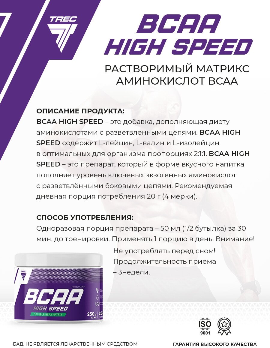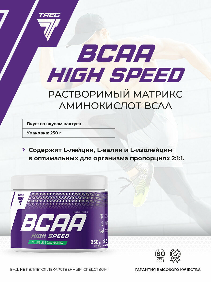 Купить BCAA спорт питание порошок 250 гр, Trec Nutrition BCAA 2:1:1 High Speed, вкус кактус с доставкой по всей России.
