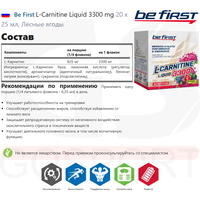 Купить Be First L-Carnitine Liquid 3300 mg 20 х 25 мл, Лесные ягоды с доставкой по всей России.