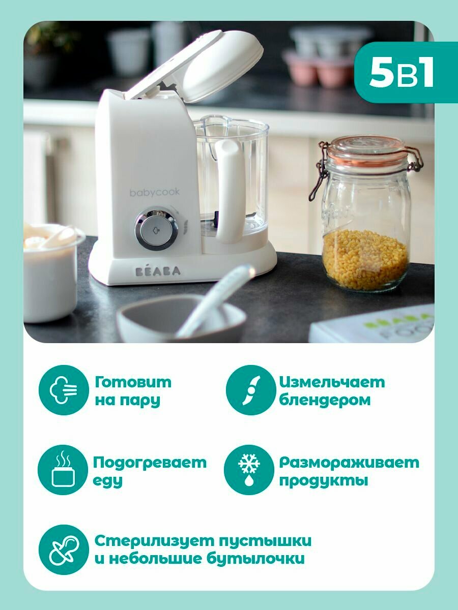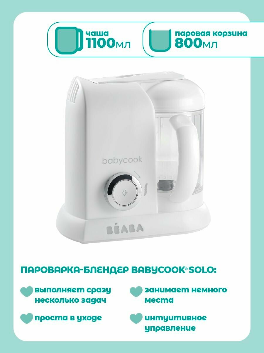 Компания Beaba является ведущим экспертом в детской гастрономии. В течение 30 лет молодые мамочки начинают первый прикорм с помощью блендера-пароварки Babycook и аксессуаров. Блендер-пароварка Babycook Solo 4 в 1: