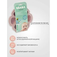 BEABA контейнер для детского питания — 6 отсеков по 150 мл, силиконовая форма для заморозки и выпечки, контейнер для хранения с крышкой
