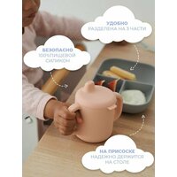 Набор детской посуды из 3-х предметов для перового прикорма. Тарелка на присоске детская – незаменимый аксессуар при кормлении малыша. Мягкий и гибкий силикон не только предотвращает возможные травмы или разбитие тарелки, но также обеспечивает комфорт и легкость использования. Эргономичный дизайн прекрасно подходит для маленьких ручек ребенка. Тарелка секционная также имеет удобный размер, который идеально подходит для маленьких порций детской пищи. Благодаря отсекам на тарелке, вы можете предложить разные продукты одновременно, избегая их смешивания. Это помогает развивать у ребенка навыки приема пищи и расширяет его вкусовые предпочтения. Еще одним преимуществом силиконовой тарелки от Beaba является ее возможность адаптироваться к различным поверхностям. Благодаря присоске, ее можно легко закрепить на любой гладкой поверхности, будь то стол, детский столик или поднос. Это значительно уменьшает риск случайного смещения или опрокидывания тарелки во время приема пищи. Эргономическая ложка Beaba создана специально для малышей. Она имеет удобную ручку и небольшой объем, что позволяет легко кормить ребенка, не вызывая у него дискомфорта. Ложка детская имеет специальные формы без острых краев и размеры, которые учитывают особенности маленьких ротиков и десен без зубов, а ее небольшой объем позволяет избежать перекармливания. Кроме того, ложечка для прикорма может служить прорезывателем для зубов, что делает ее еще более полезной. Ручка ложки детской обеспечивает удобство при кормлении и предотвращает проливание пищи, а оптимальная длина ложечки идеально подходит для детских ручек. Силикон не содержит бисфенол-А BPA, BPF, BPS, PVC, фталатов и других вредных веществ. Детская силиконовая посуда прошла все необходимые тесты на безопасность и соответствует высоким стандартам качества. Силиконовая обучающая кружка с ручками и съемная крышка носик. Идеально подходит для развития самостоятельности малышей во время еды. Герметичная и съемная крышка: благодаря чему содержимое не прольется. При желании ее можно снять и получится детский стаканчик для питья. Кроме того, поильник детский можно использовать как стакан или кружечку для ребенка. Поильник кружка выполнен из легкого, небьющегося и экологически чистого силикона. Объем бутылочки составляет 170 мл. Поилка имеет нескользящее основание и устойчива к падениям, эргономичные удобные ручки развивают мелкую моторику малыша, позволяют ребенку держать и нести поильник самостоятельно. Такая кружка идеально подходит для негустых напитков: воды, сока, молока, детских смесей и т. д. Рекомендуется использовать с 8- месячного возраста.