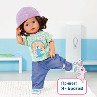 Куклы Беби Борн знакомы каждому из нас с самого детства! Играть в дочки-матери с Беби Борн никогда не станет скучно! Кукла Беби Борн - это не только пупс, за которым нужно ухаживать, но и прекрасный компаньон для больших приключений. Знакомьтесь с куклой Братик Беби Борн! Посмотрите, какой он модник! На нем яркая футболка, стильные джинсы, разноцветные ботинки и шапка. Его ножки и ручки очень подвижные, благодаря этому он может сам стоять и сидеть без опоры. Купаться в ванной, часто менять наряды и быть всегда на стиле - любимые занятия Братика Беби Борн! Братик обожает заниматься гимнастикой, благодаря гибким ручкам и ножкам, может повторить практически любое движение. В комплекте 3 аксессуара для игры: расческа, 2 браслета, инструкции. Кукла изготовлена из высококачественного материала, безопасного для детей. Товар сертифицирован. Рекомендуется детям старше 4-х лет. Тип упаковки – открытая подарочная коробка. Размер игрушки: 43 см. В случае загрязнения куклу можно слегка протереть влажной тканью. В случае загрязнения одежды куклы рекомендована ручная стирка. Размер упаковки: 24,9*19,8*38,1 см.