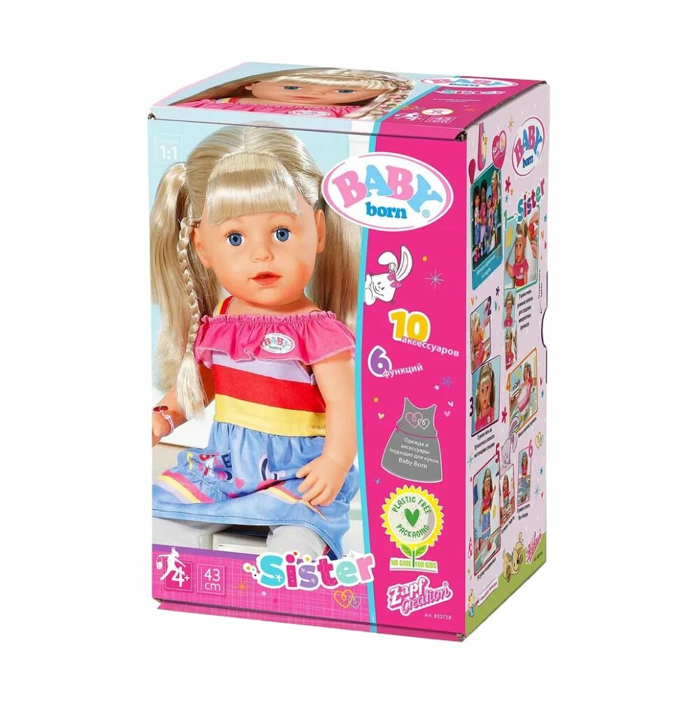Беби борн. Интерактивная кукла для девочки Сестричка 43 см, аксессуары, пупс: сравнение цен, характеристики, фото, актуальное наличие и цены.
