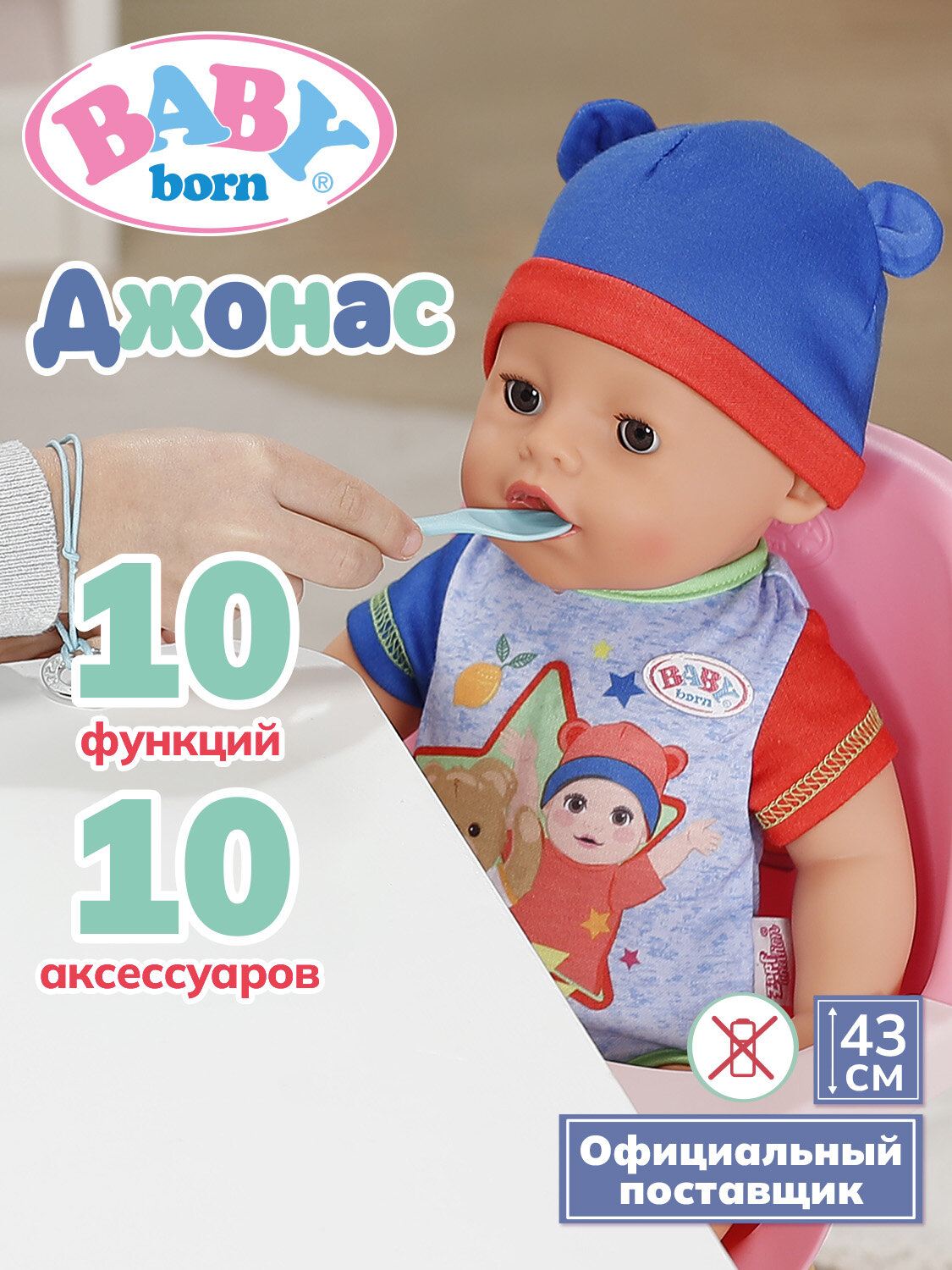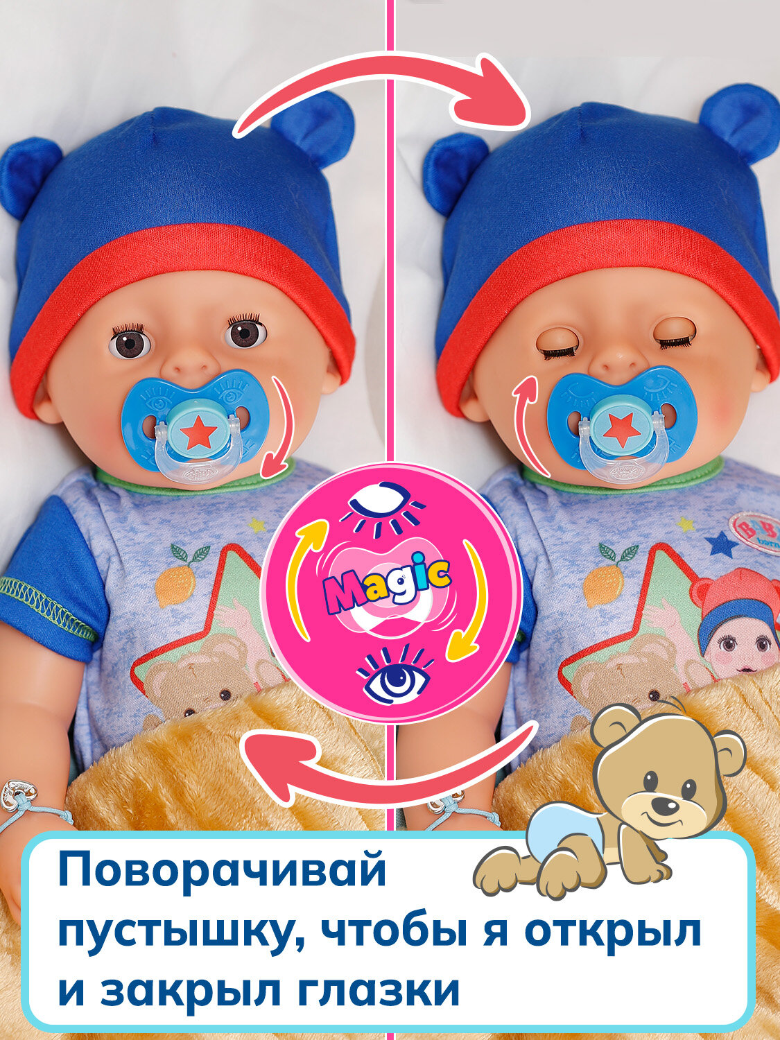 Познакомьтесь с куклой Беби Борн Джонас Магические глазки 43 см! На улице еще светло и Джонас никак не хочет спать? Просто поверни пустышку во рту, и глазки закроются, в каком бы положении ни находился малыш.