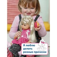 В комплекте 7 аксессуаров: свидетельство о рождении, бутылочка для питья, подгузник, соска, тарелка, ложка, горшок, инструкция.
