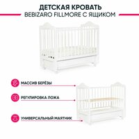 Кроватка для новорожденных Bebizaro Fillmore White Маятник универсальный с ящиком (ШхГхВ) 125х67х109 см: сравнение цен, характеристики, фото, актуальное наличие и цены.