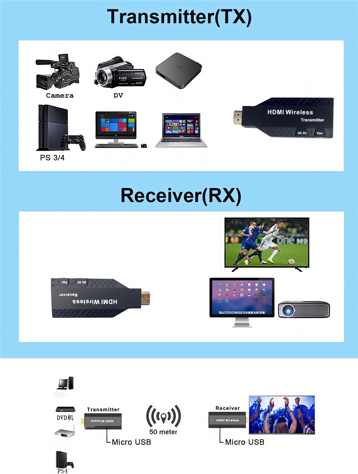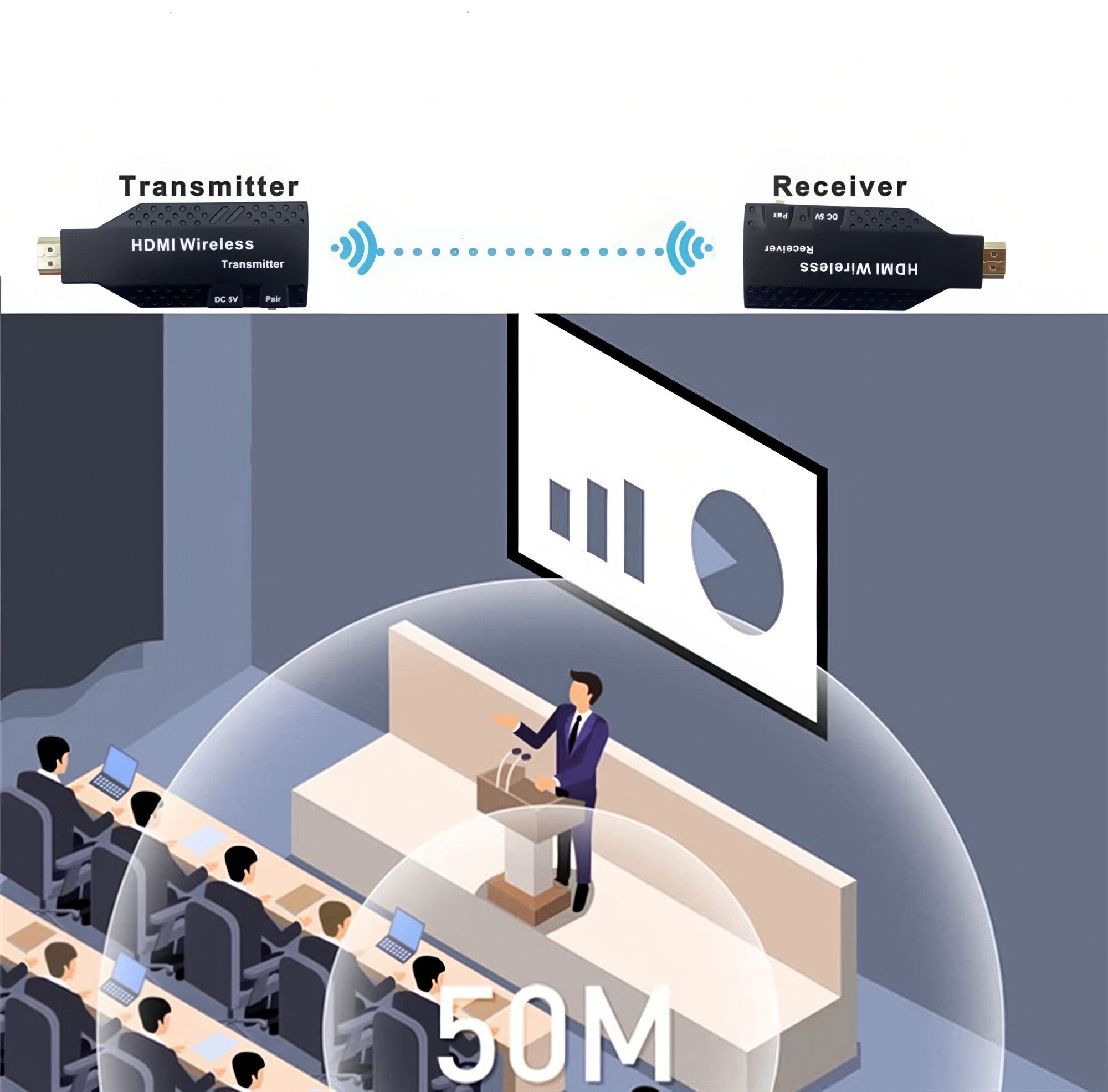 Купить Беcпроводной HDMI удлинитель по Wi-Fi 5G, адаптер TECH GT-HW50M: Трансмиттер и приёмник для ноутбуков с доставкой по всей России.