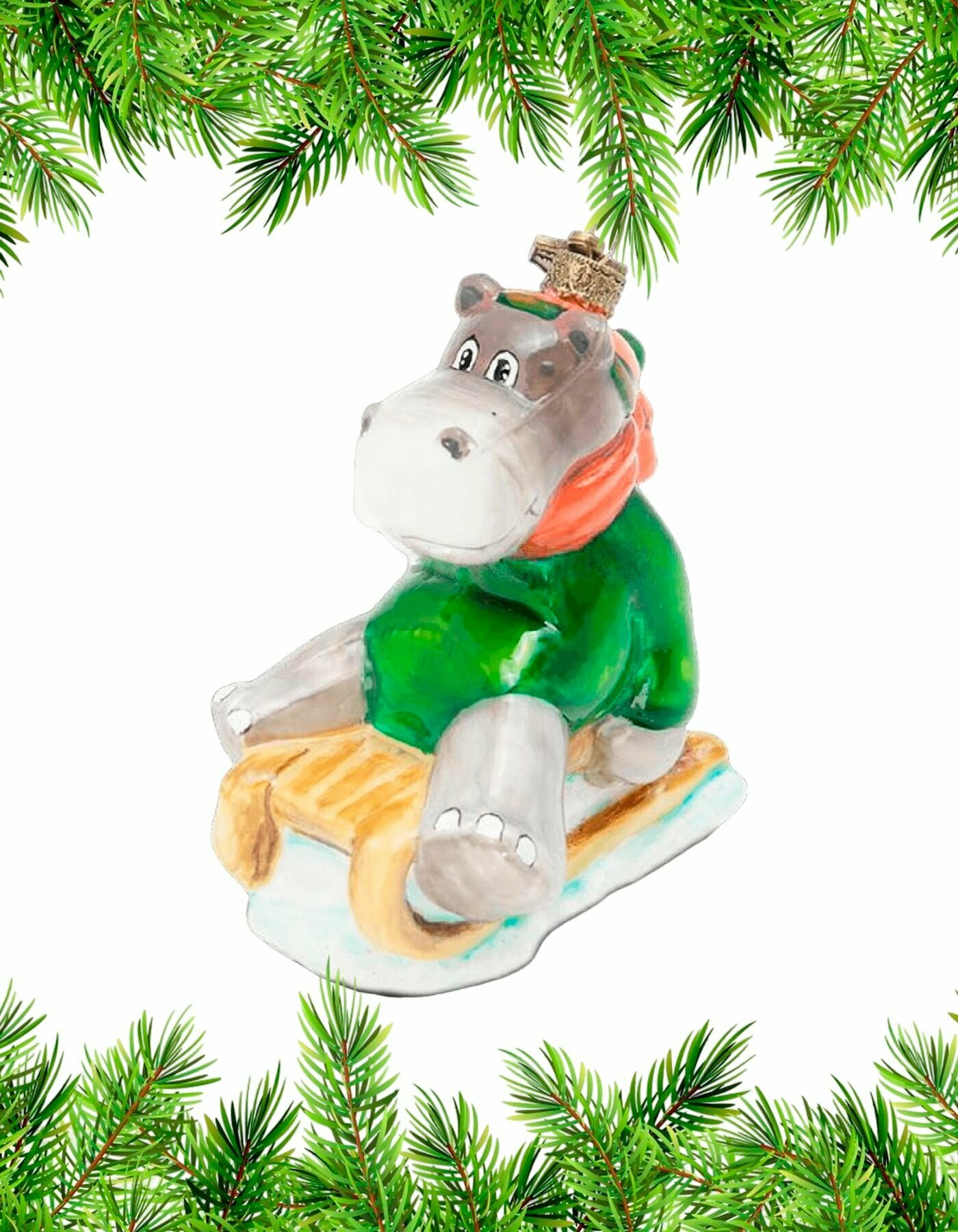 Игрушка на елку Бегемотик в саночках яркая и детализированная новогодняя игрушка символ 2024 года на елку с ручной росписью. Украшение на елку станет универсальным зимним подарком либо красивым украшением домашней елки, венка, интерьера. Игрушки выполнены из стекла. Все наши елочные игрушки и украшения расписаны вручную, имеют индивидуальную упаковку. Вы всегда можете подобрать для себя и своих любимых подарочный набор, ведь украшения и декорации это отличный подарок на новый год или рождество! Стеклянные украшения прослужат Вам долгие годы! Эта игрушка подойдет если Вы давно искали: Большие или маленькие игрушки, из СССР, черные белые розовые или золотые, бусы, заяц или кролик, елочные наборы или шишки.