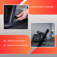 Электрическая беговая дорожка для дома - ультра-компактный тренажер, рассчитанный на кардиотренировки начальной и средней интенсивности. Модель подходит для тренировок пользователям с весом до 110 кг и практически без ограничений по росту. Мощность мощность двигателя DC 2 л. с. Это мощный двигатель, который обеспечивает плавное движение бегового полотна на любой скорости и с максимальной нагрузкой. Максимальная скорость складной беговой дорожки — 14 км/ч. Поскольку это интенсивная скорость, в дорожке учтено все, чтобы бег был комфортным и безопасным. Размер бегового полотна ― 110х40 см. Поскольку полотно просторное, даже высоким пользователям не придется смотреть, куда ставить ногу во время бега. На полотно нанесен антискользящий протектор, он позволяет бежать уверенно, не боясь поскользнуться. усиленный металлический каркас MP3, USB - вход LСD дисплей: скорость / время / дистанция / калории / пульс / body fat мощность двигателя DC 2 л. с. 12 предустановленных программ скорость 1 - 10 км/ч 3 ступени наклона от 0º до 5º подъем механический габариты 1430*635*1065 мм вес оборудования 28 кг макс. вес пользователя 110 кг габариты упаковки: 1425*657*240 мм вес в упаковке 34 кг простая установка система амортизации: Air Cushion