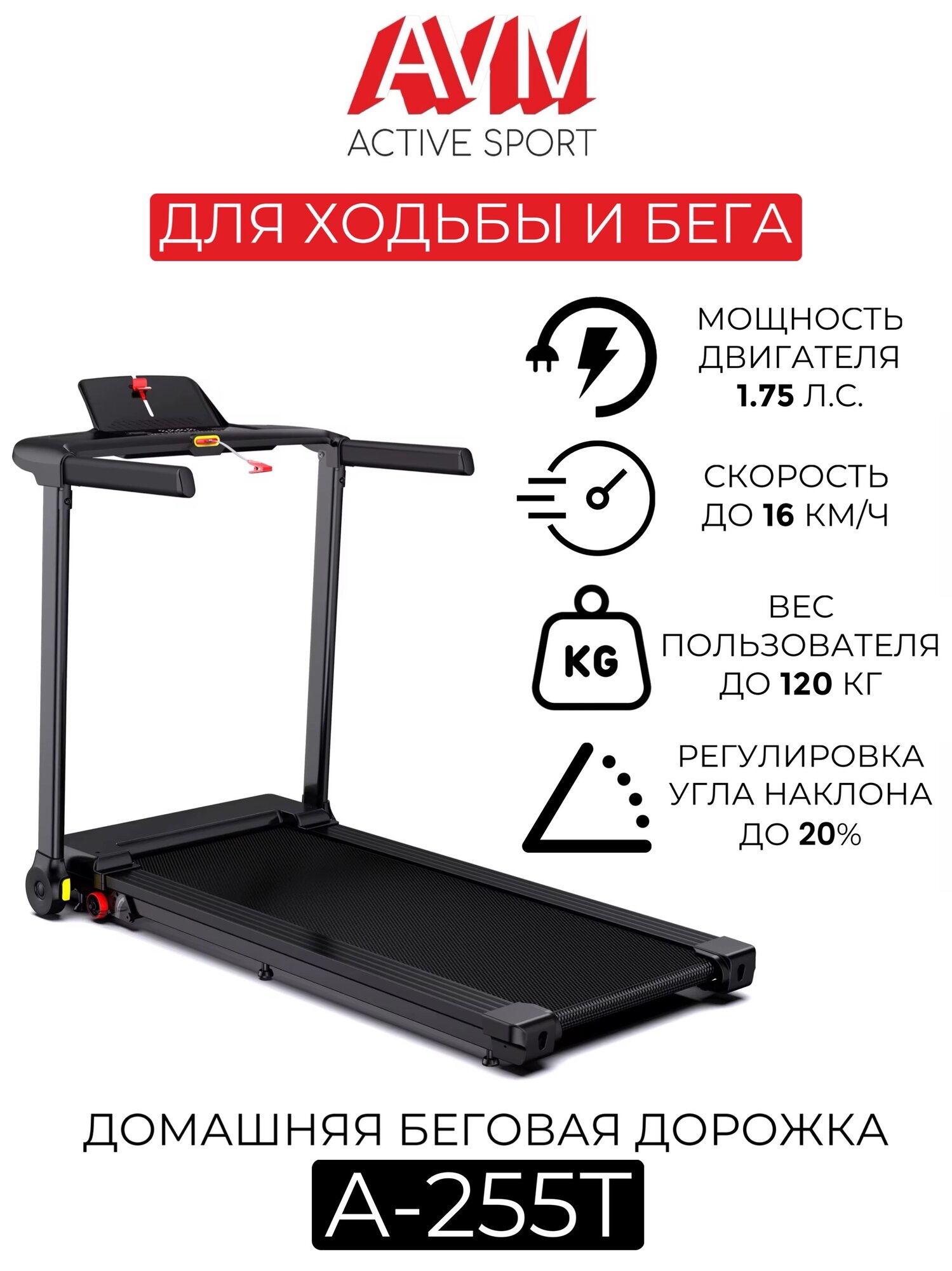Беговая дорожка AVM A-255T для дома / Черная / Складная / С автоматической системой смазки / С углом наклона / До 120 кг: сравнение цен, характеристики, фото, актуальное наличие и цены.