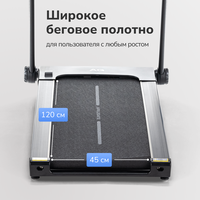 Беговое полотно толщиной 1.6 мм обеспечивает отличное сцепление, а его размер 120*45 см предоставляет достаточно пространства для комфортного бега.