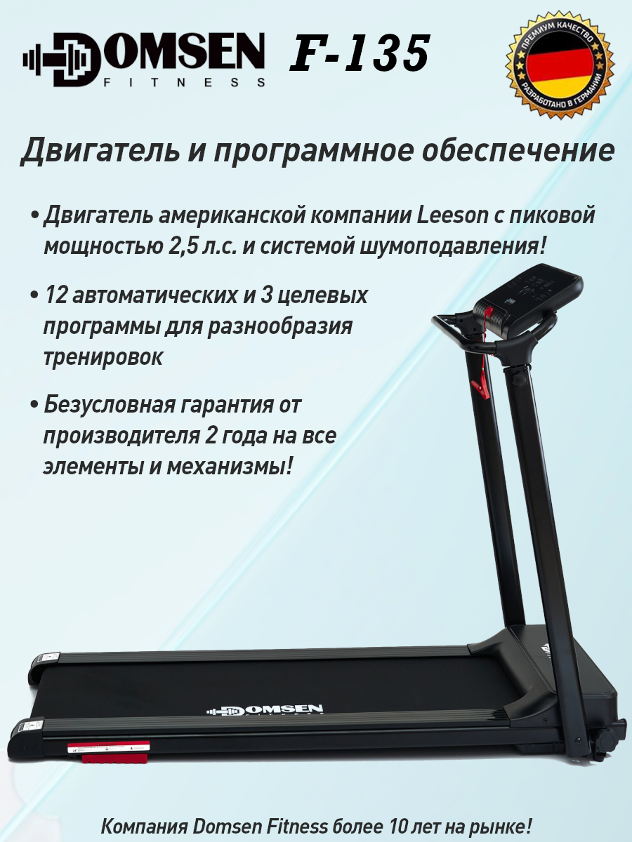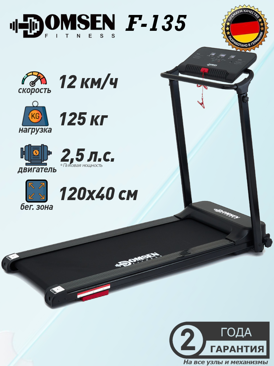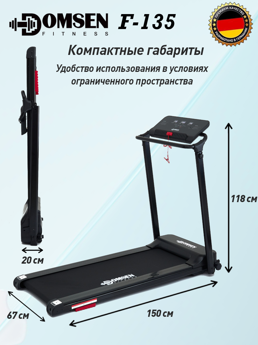 Купить Беговая дорожка для дома Domsen Fitness F-135, электрическая, складная, компактная, до 120 кг с доставкой по всей России.
