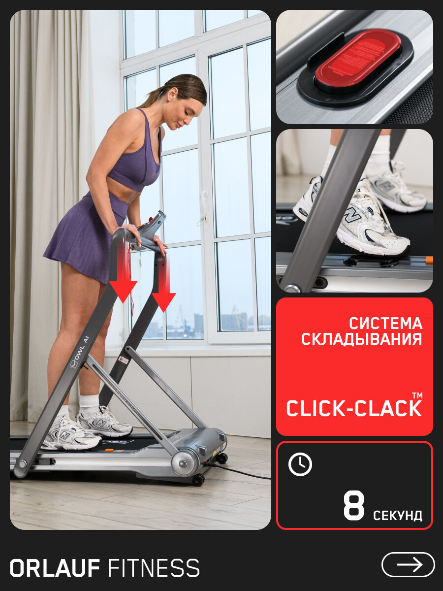 Купить Беговая дорожка для дома Orlauf Owl AI / Электрическая / Ультра компактная / Без поручней /С изменением угла наклона с доставкой по всей России.