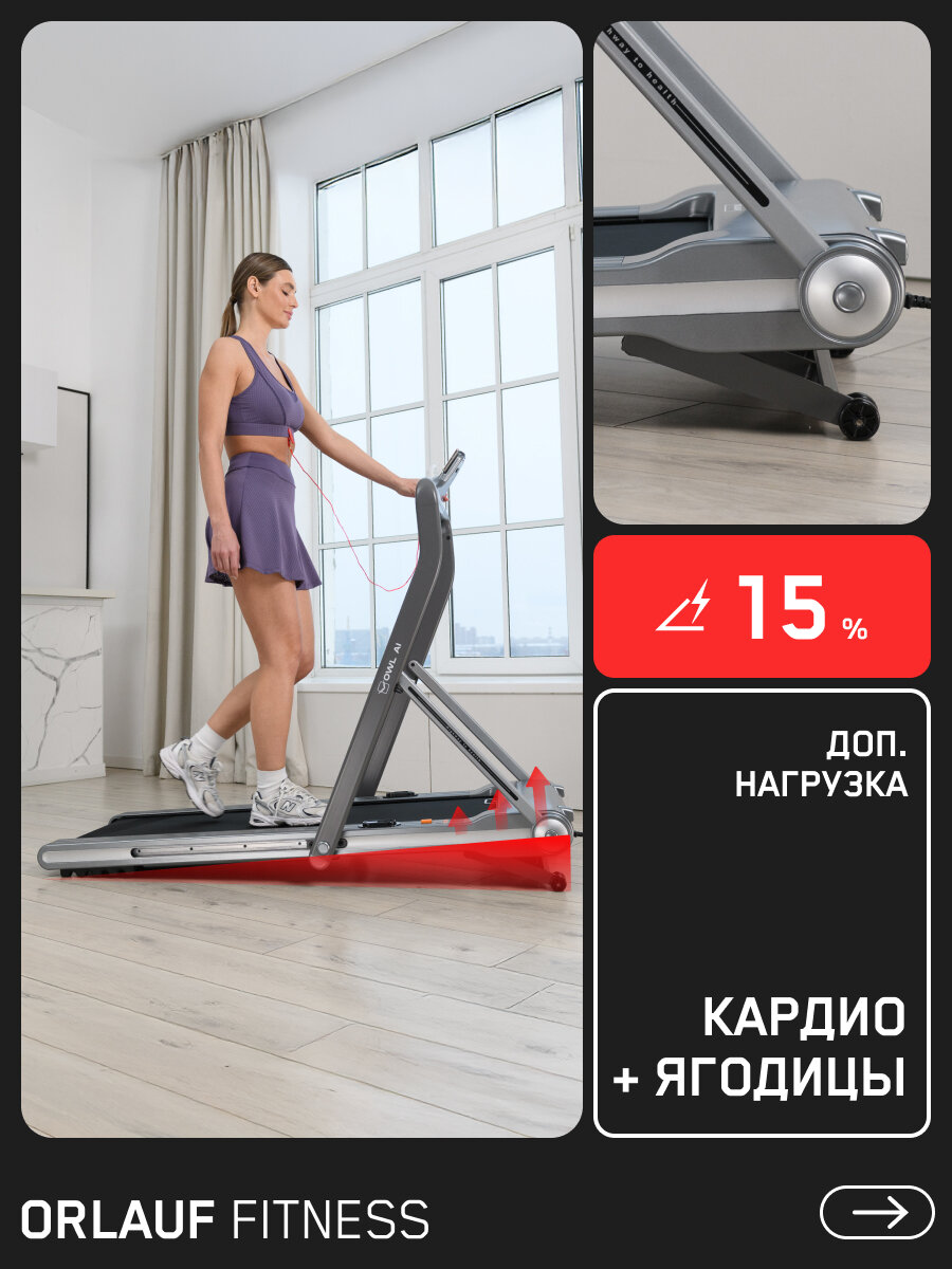 Беговая дорожка для дома Orlauf Owl AI / Электрическая / Ультра компактная / Без поручней /С изменением угла наклона: сравнение цен, характеристики, фото, актуальное наличие и цены.