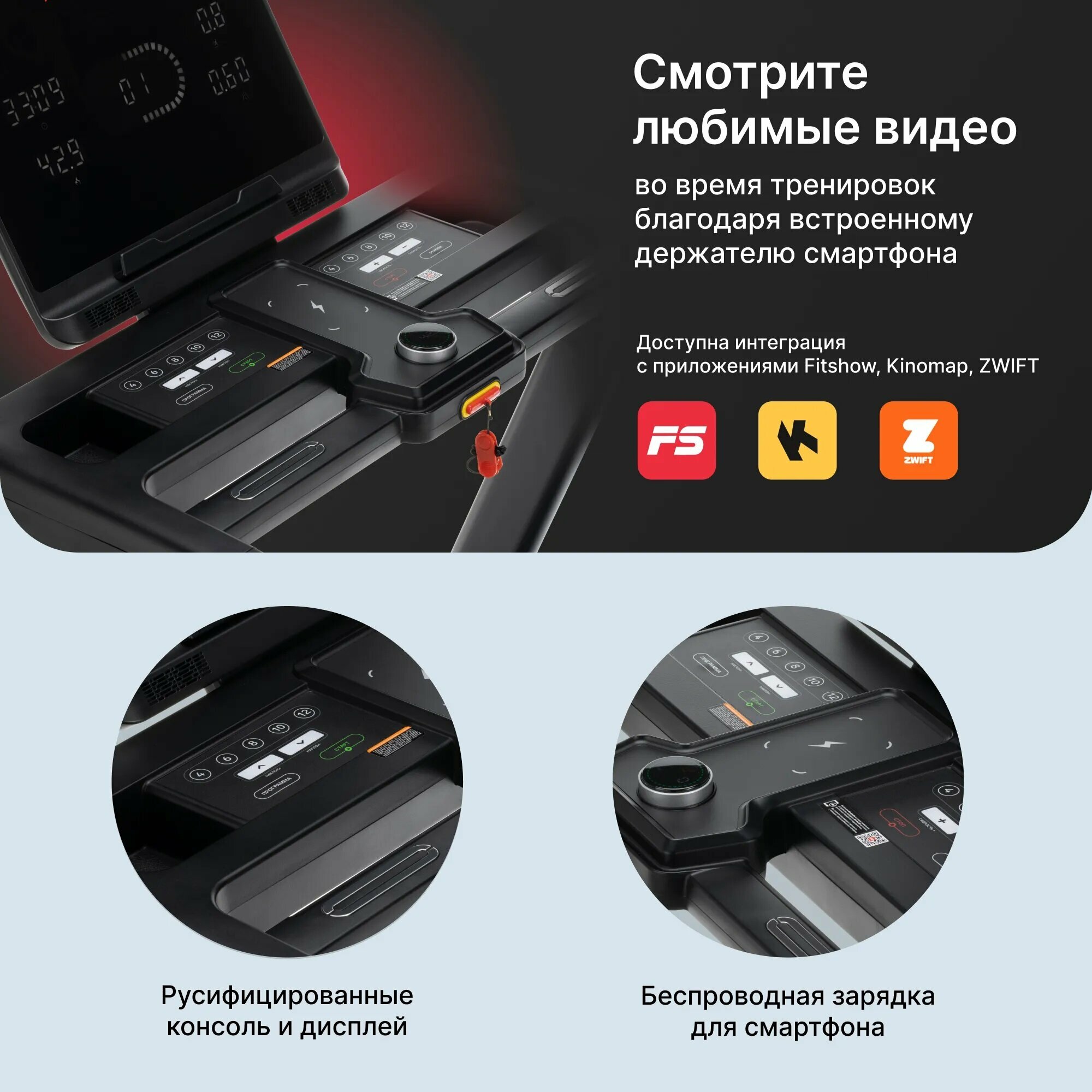 Удобство использования и хранения является одним из преимуществ этой беговой дорожки. Двухфазная гидравлическая система Easy Drop позволяет плавно поднять беговую поверхность для удобного хранения. Плюс ко всему здесь есть беспроводная зарядка для ваших смартфонов.