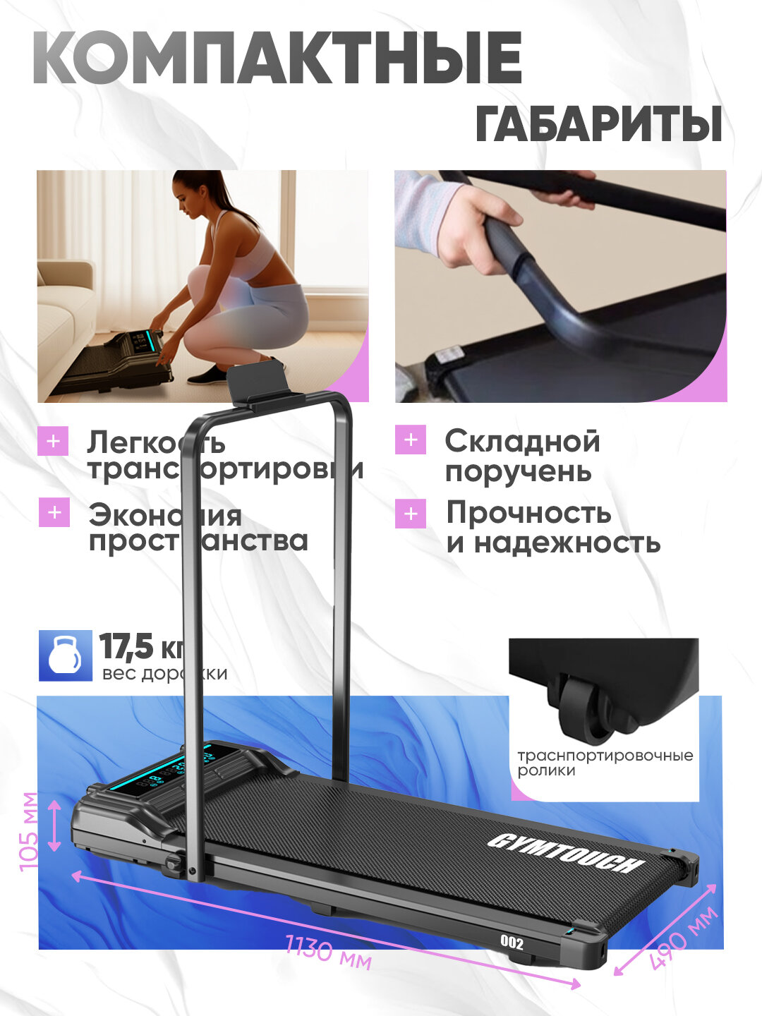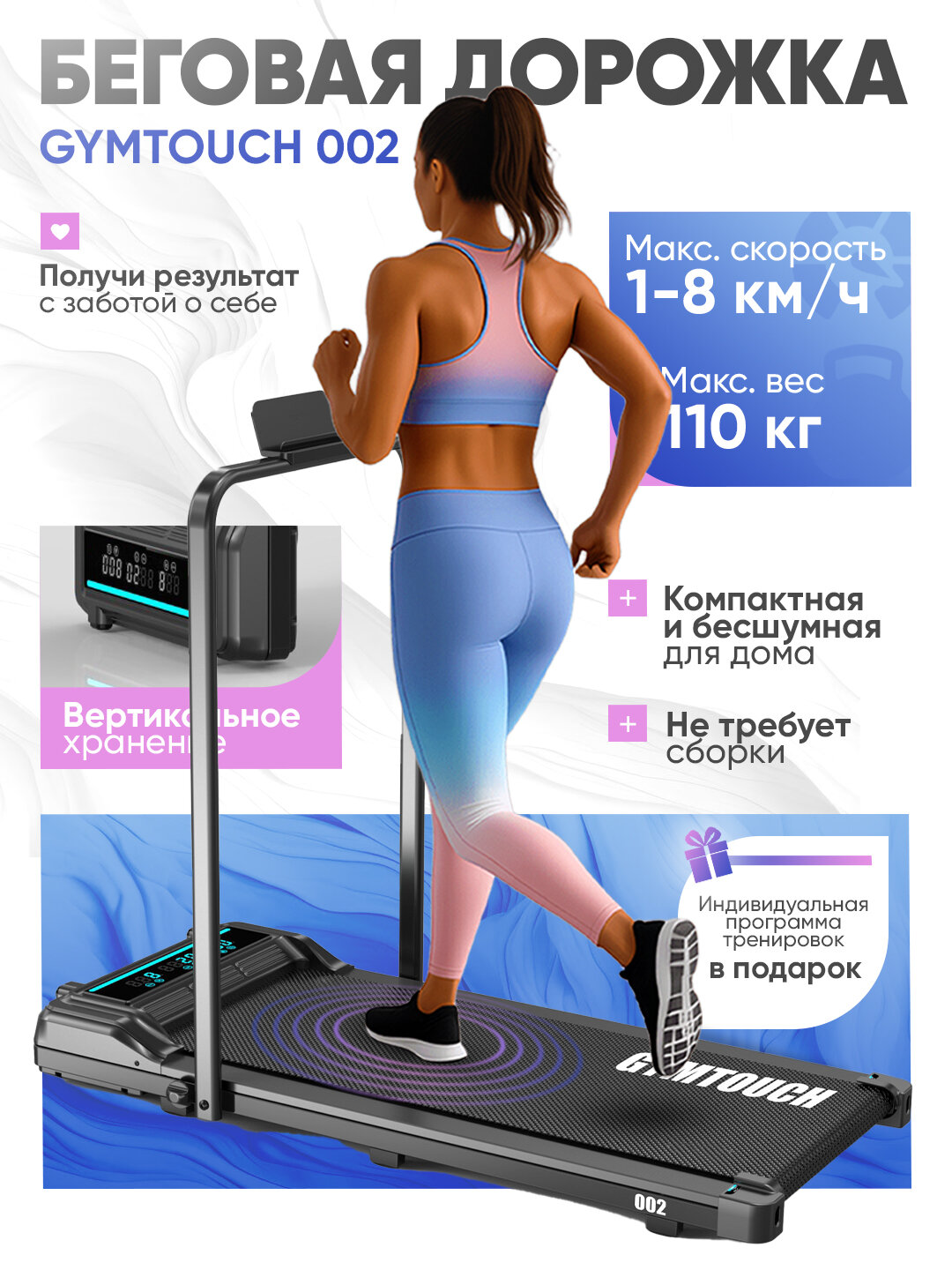 Беговая дорожка GYMTOUCH 002, для дома, электрическая, компактная, беговое полотно 95х38 см, до 110кг, 8 км/ч: сравнение цен, характеристики, фото, актуальное наличие и цены.
