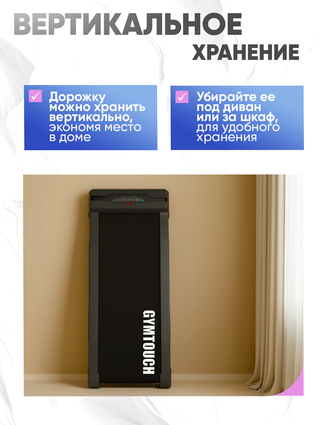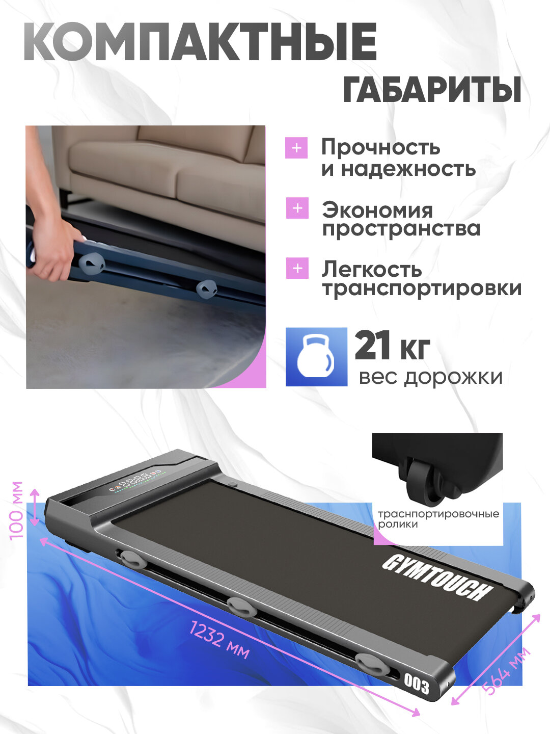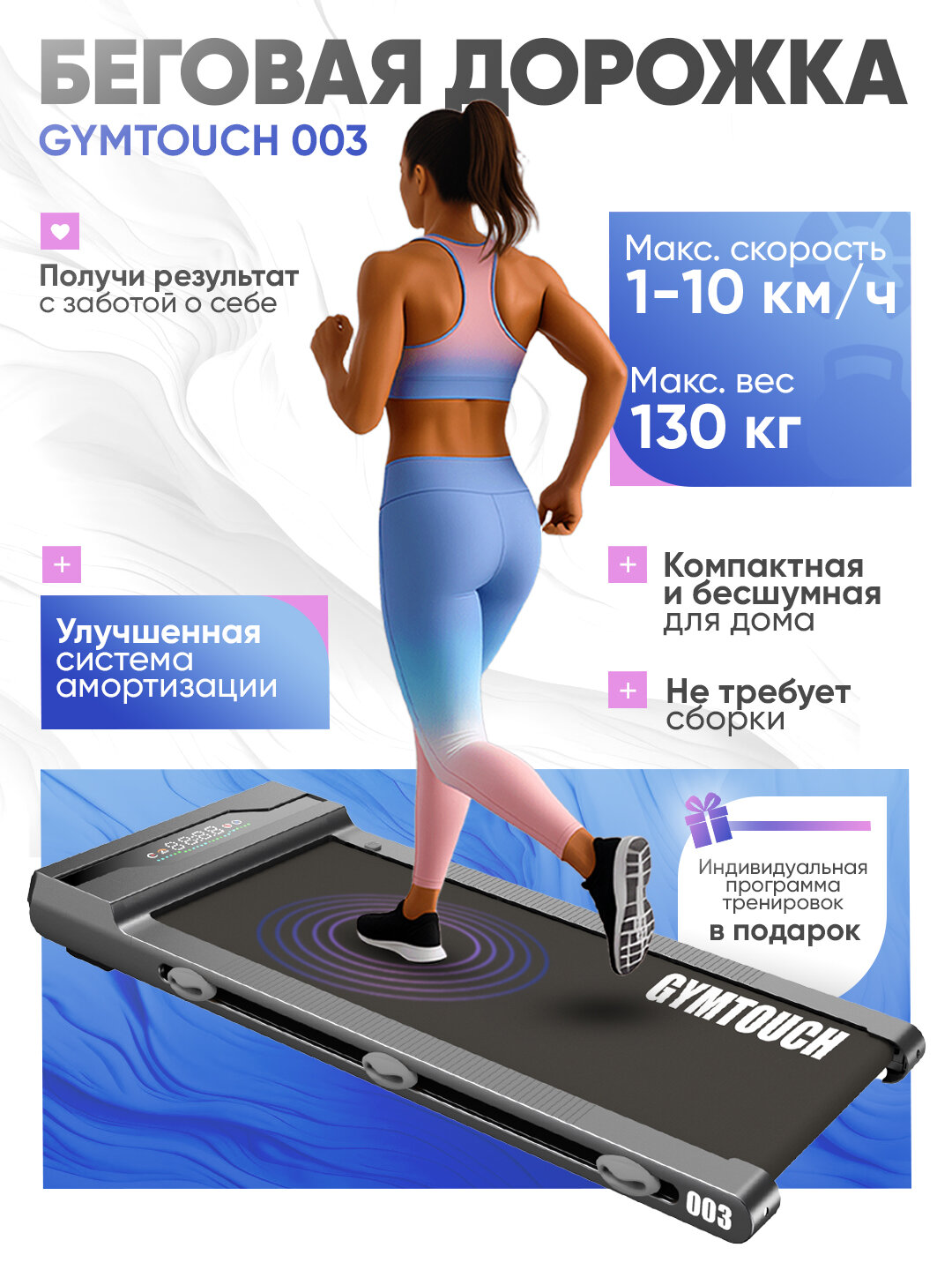 Беговая дорожка GYMTOUCH 003, для дома, электрическая, компактная, беговое полотно 100х42 см, до 130кг, 10км/ч: сравнение цен, характеристики, фото, актуальное наличие и цены.
