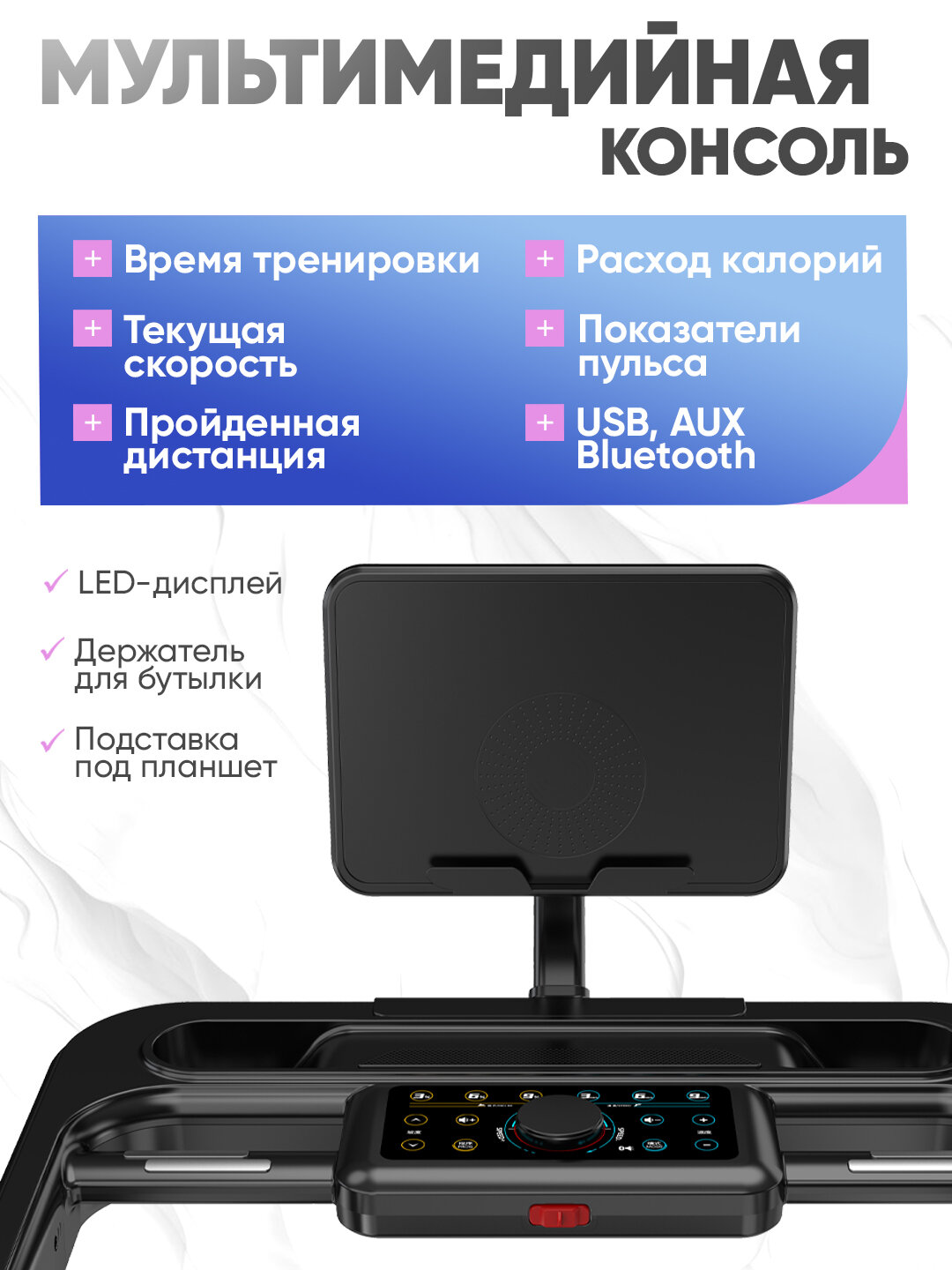 | Особенности | противоскользящее покрытие, транспортировочные ролики/колеса, Держатель для бутылки, Держатель для телефона, Компенсатор неровности пола, Синхронизация музыки по Bluetooth |
