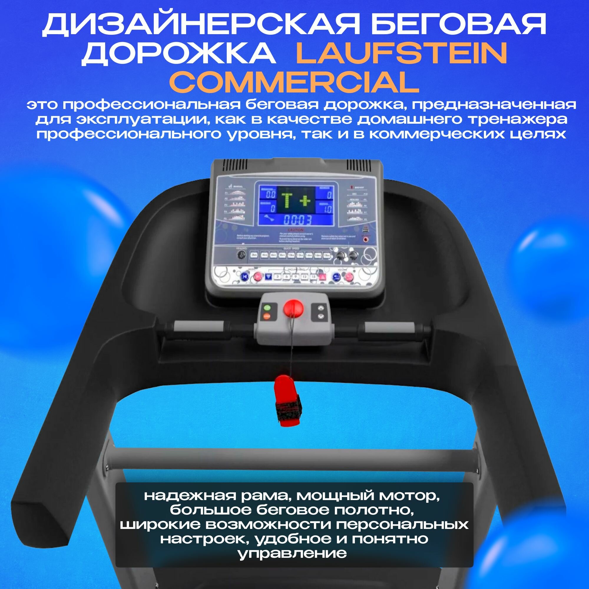 LAUFSTEIN COMMERCIAL – это профессиональная беговая дорожка, предназначенная для эксплуатации, как в качестве домашнего тренажера профессионального уровня, так и в коммерческих целях.