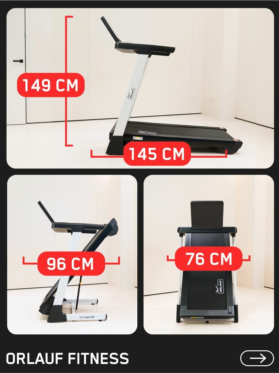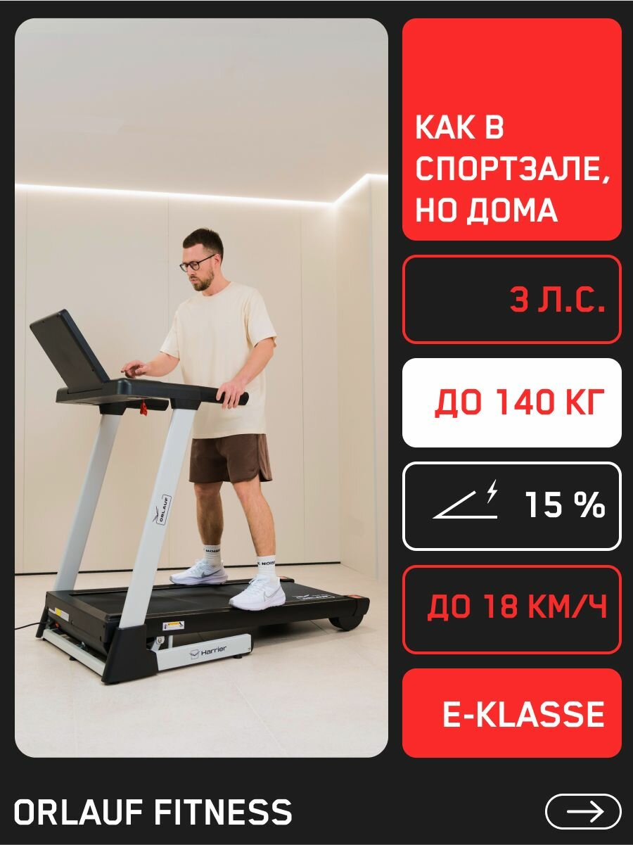 Беговая дорожка электрическая для дома Orlauf Harrier Grey с регулировкой наклона: сравнение цен, характеристики, фото, актуальное наличие и цены.
