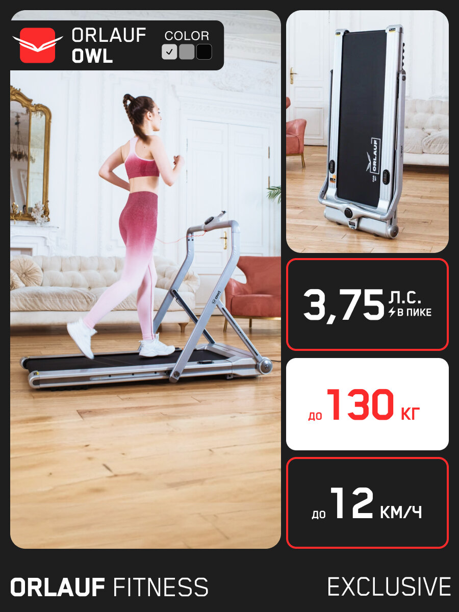 Электрическая беговая дорожка для дома Orlauf Owl — это ультракомпактный тренажер, созданный для комфортных и эффективных тренировок в домашних условиях.