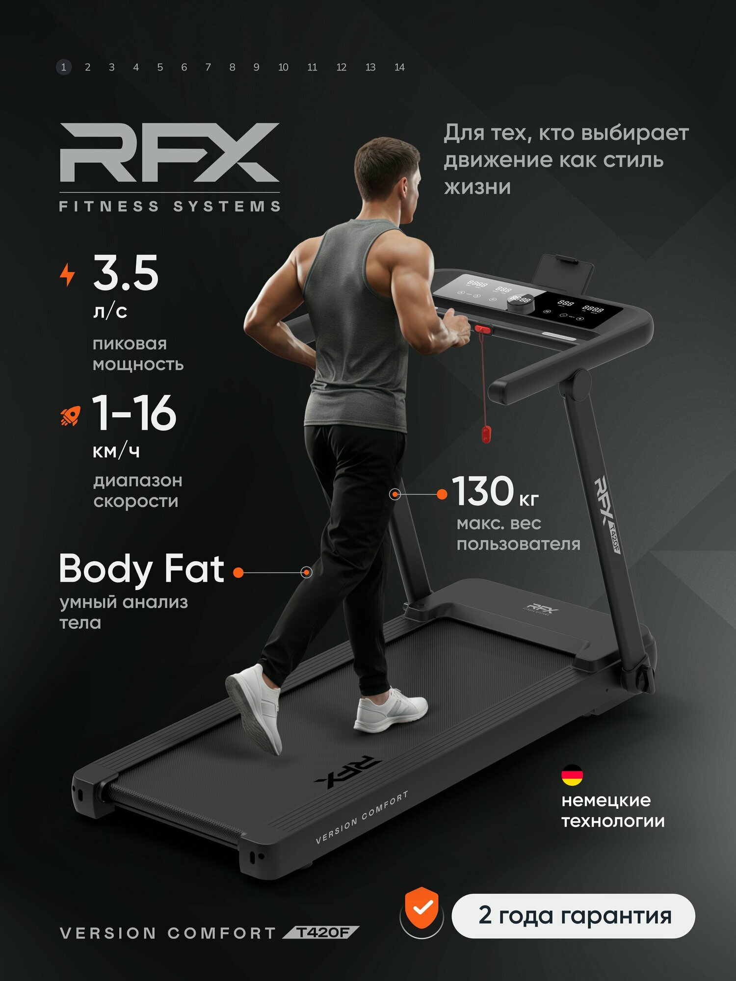 Беговая дорожка RFX T420F, электрическая, складная, для дома, 130кг, 14 программ: сравнение цен, характеристики, фото, актуальное наличие и цены.