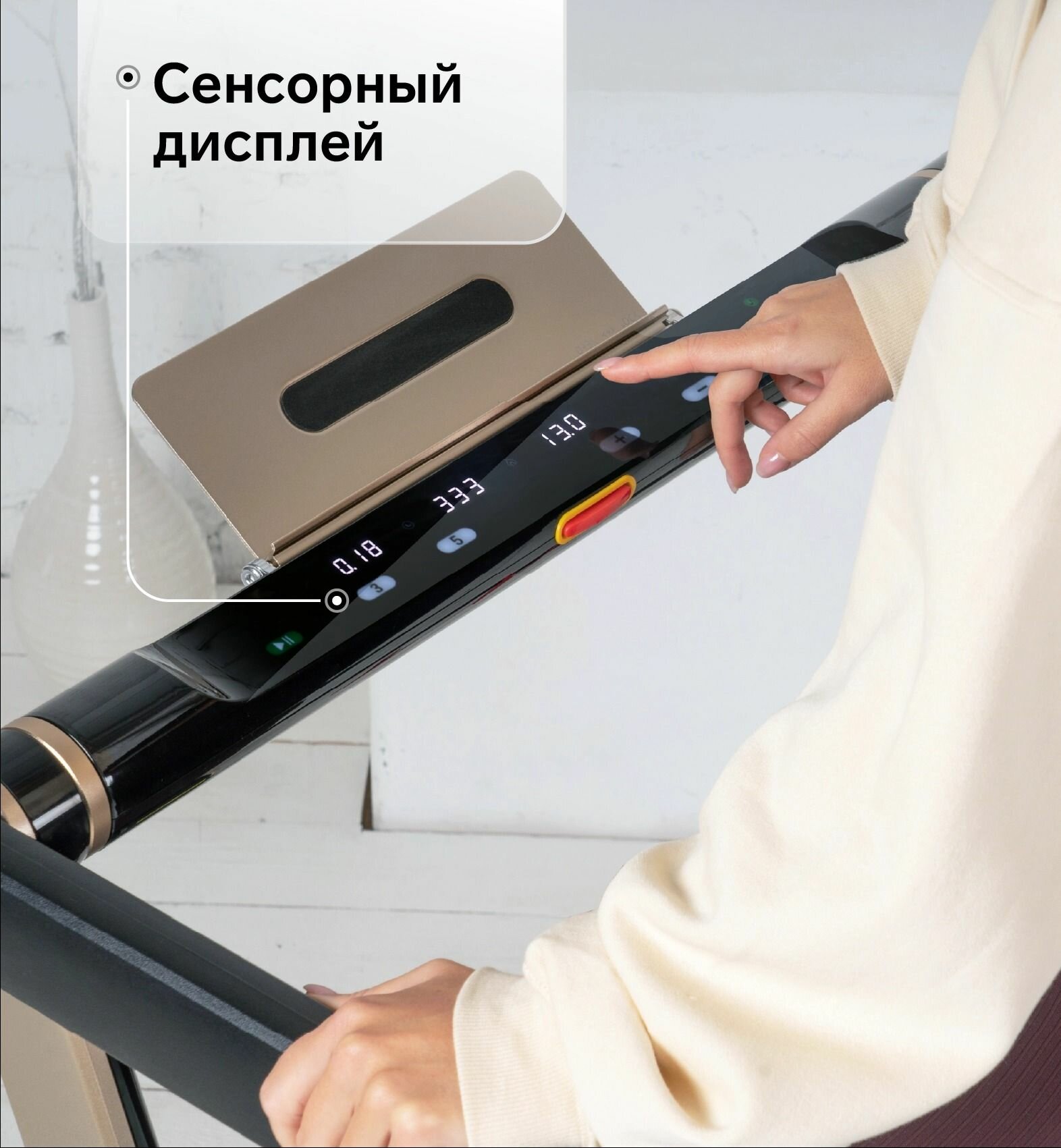 Регулировка скорости бегового полотна от 1 до 12 км/ч позволяет тренироваться в разной интенсивности, а 4 динамических и 2 плоских эластомера помогают снизить воздействие отрицательной нагрузки на суставы пользователя – это делает тренировку комфортной и снижает вероятность получения травмы во время занятий спортом. Благодаря наличию антискользящего покрытия на полотне, бегун может тренироваться в любой удобной для себя обуви.