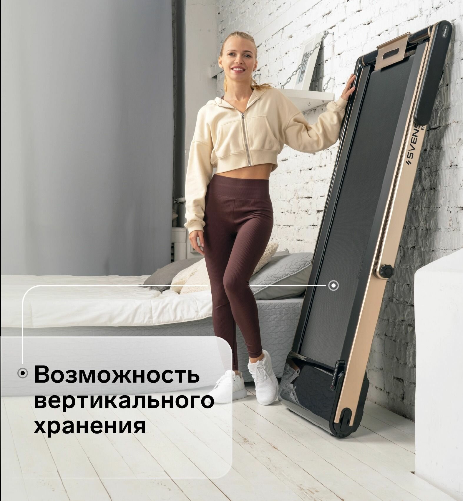 Компактные габариты готовой к работе беговой дорожки, позволяют использовать ее в небольшом помещении. При необходимости тренажёр можно сложить – это, например, значительно облегчает процесс хранения модели. В сложенном состоянии беговая дорожка занимает мало места. Работает тренажер от бытовой 220-вольтовой электрической сети.