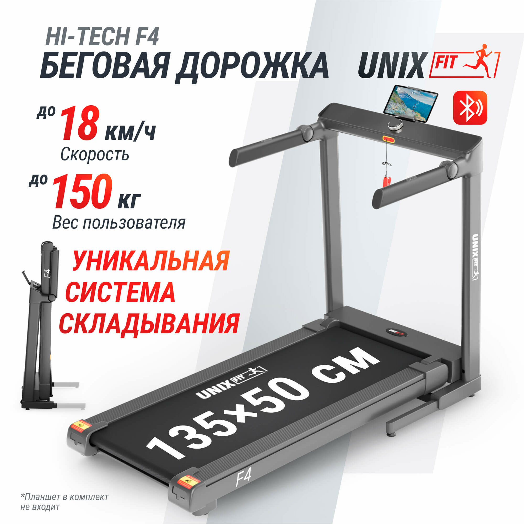 Беговая дорожка UNIX Fit Hi-tech F4 Space Grey — отличный выбор для всех, кто хочет улучшить свою физическую форму, сжечь калории и получить удовольствие от занятий! Каждая тренировка станет следующим шагом к новой версии себя и своего тела!