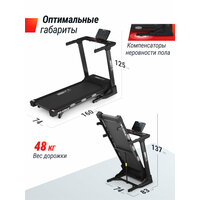 Складная дорожка оснащена мощным двигателем с пиковой мощностью 4 л. с, обеспечивающим максимальную скорость движения ленты до 16 км/ч. Это позволяет легко варьировать интенсивность нагрузок в зависимости от ваших целей и уровня подготовленности. Благодаря наличию встроенной системы охлаждения и бесшумному режиму работы мотор обеспечивает долгую эксплуатацию устройства без перегрева и шума даже при длительных интенсивных занятиях.