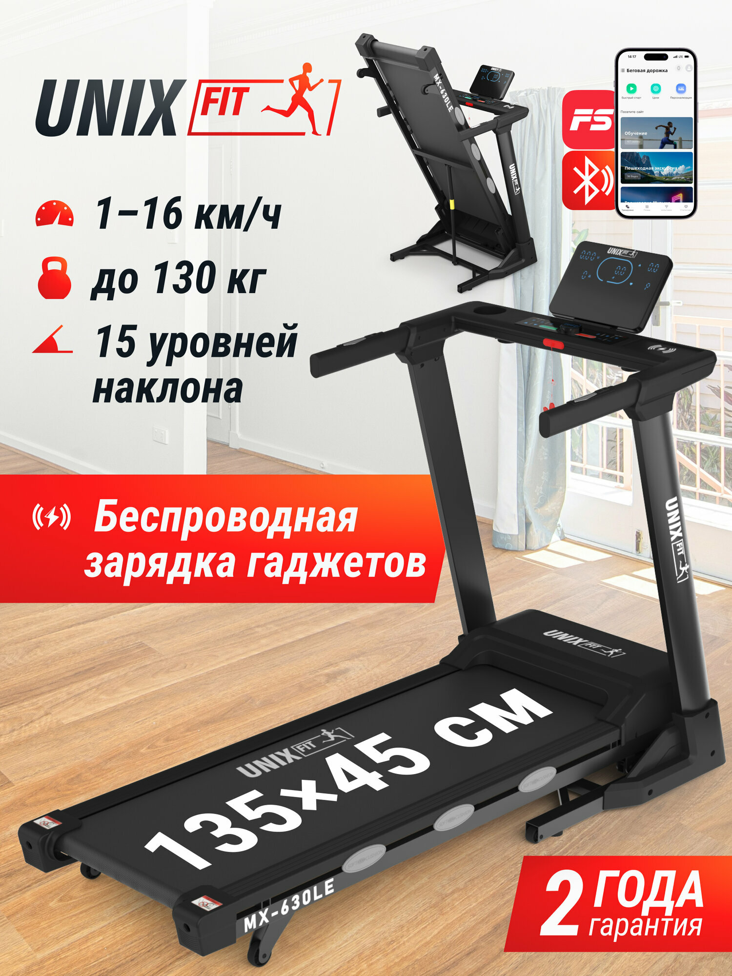 Панель управления представлена тремя большими LED-экранами с интуитивно понятным интерфейсом и удобным сенсорным управлением и диммером с дисплеем для быстрого изменения скорости. Вам доступна информация обо всём ходе вашей тренировки дома: время, скорость, расстояние, пульс, уровень наклона, количество сожженных калорий. Предусмотрена кнопка быстрого запуска и выбор скорости и угла наклона. Дорожка для ходьбы и бега UNIX Fit MX-630LE поддерживает интеграцию с мобильным приложением FitShow, которое открывает доступ к широкому спектру интерактивных возможностей. Пользователи могут выбирать различные программы тренировок, отслеживать статистику прогресса, делиться результатами с единомышленниками и даже заниматься вместе с друзьями онлайн!