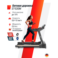 Беговые дорожки торговой марки UNIXFIT™ серии ST – это надежность и компактность. Они сочетают в себе все основные функции, необходимые для успешной тренировки. Модель UNIXFIT ST-530M отличает возможность выставления внушительного для данной категории угла наклона бегового полотна (15%), комфортные для бега размеры полотна (40 х 110 см) и компактные габариты как в сложенном виде, так и в рабочем состоянии. Максимальная скорость бега на данной модели составляет 12 км/ч. Компьютер беговой дорожки UNIXFIT ST-530M позволяет пользоваться 14 различными программами тренировки (1 ручной режим, 12 автоматических профилей, 1 BODY-FAT программа). Удобная панель управления оснащена быстрыми кнопками переключения скорости, информативным LCD дисплеем с голубой подсветкой и большими подстаканниками. Беговое полотно двухслойное антискользящее покрытие (толщина 1.6 мм), Дека 14 мм, Система амортизации 6 плоских эластомеров (снижают нагрузку на позвоночник и суставы) Размер в рабочем состоянии (Д*Ш*В) 1500х650х1300 мм Максимальный вес пользователя 110 кг Гарантия 2 года. Это отличный инструмент для похудения. Он помогает эффективно бороться с лишними килограммами. Регулярные занятия нормализуют работу сердца, повышается выносливость организма. Наличие встроенных датчиков, показывающих основные параметры тренировки, дают установить подходящий режим и нагрузку. В комплект к беговой дорожке входит набор для фитнеса, который состоит из: сумки для телефона с креплением на руку и фитнес-браслета. Эти аксессуары принесут еще больше пользы вашим тренировкам.