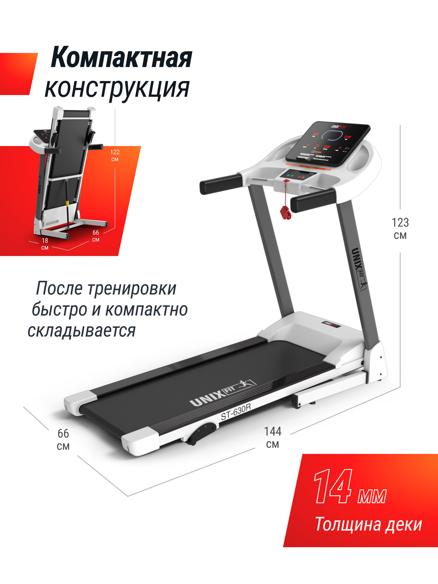 | Особенности | разъем AUX для аудионосителей, размер в сложенном виде (Д*Ш*В) 660х660х1260 мм; система шумоподавления Smartex; наклон бегового полотна: 0-10 % |