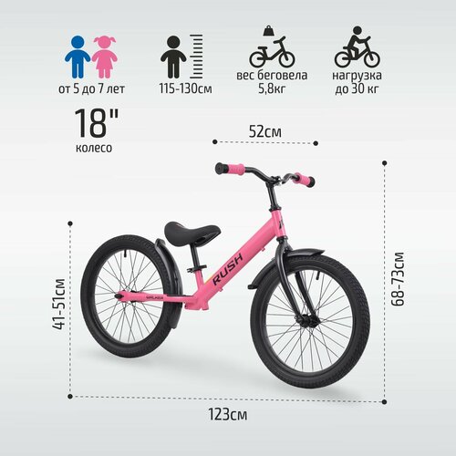 Беговел 18″ RUSH HOUR WALKER рост 115-130 см розовый. Детский транспорт для детей 6, 7, 8 и 9 лет велобег самокат без педалей толокар легкий мотоцикл: сравнение цен, характеристики, фото, актуальное наличие и цены.