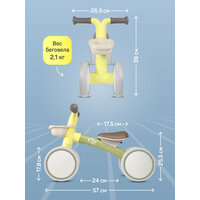 Беговел для детей — отличный способ весело провести время на свежем воздухе и вести активный образ жизни. Цвет: желтый Материал рамы: алюминий Материал колес: EVA Максимальная нагрузка: 20 кг Размер беговела: 57х26,5х39 Размер упаковки: 43х18,5х23,5 Вес беговела: 2,1 кг Вес упаковки: 2,8 кг
