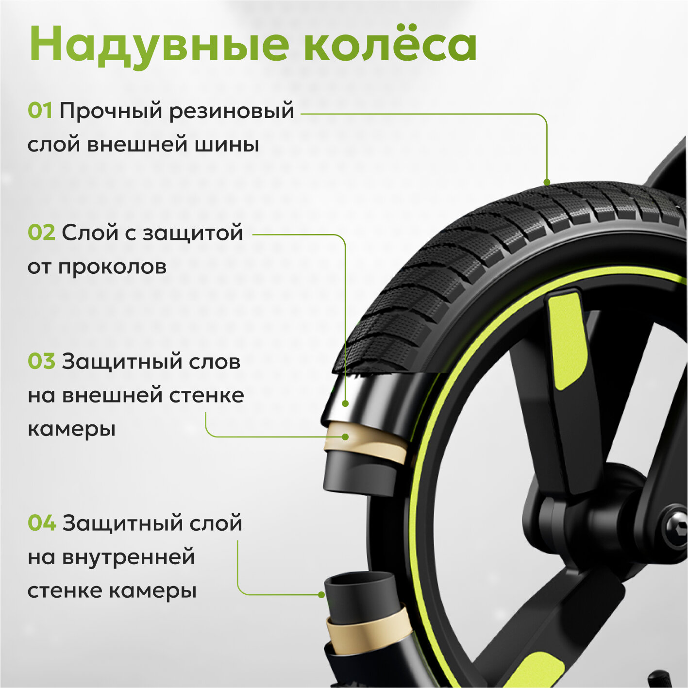 • Колёса: надувные 12 дюймов EVA