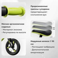 - Надувные резиновые колеса (диаметр 30,5 см) — обеспечивают мягкое и плавное движение, сглаживают неровности дороги и не шумят. Кататься комфортно как по асфальту, так и по плитке или тропинке. Беговел 12 дюймов EVA, цвет черный.