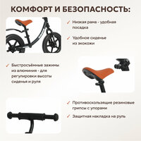 - Этот беговел двухколесный — больше, чем просто транспорт. Он: помогает ребёнку уверенно и безопасно научиться кататься, делает прогулки активными и интересными, развивает ловкость, баланс и мышечную координацию.