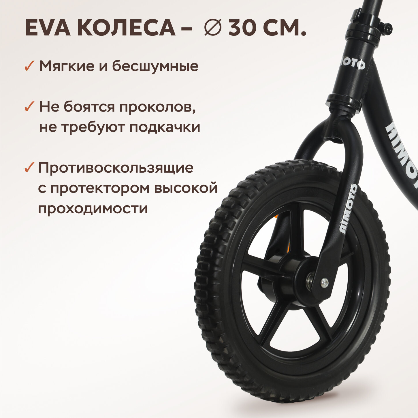 Надувные резиновые колеса (диаметр 30,5 см) — обеспечивают мягкое и плавное движение, сглаживают неровности дороги и не шумят. Кататься комфортно как по асфальту, так и по плитке или тропинке. Беговел 12 дюймов колеса EVA - не требуют подкачки, мягкие, противоскользящие и бесшумные, не боятся проколов. Колеса с протектором высокой проходимости.