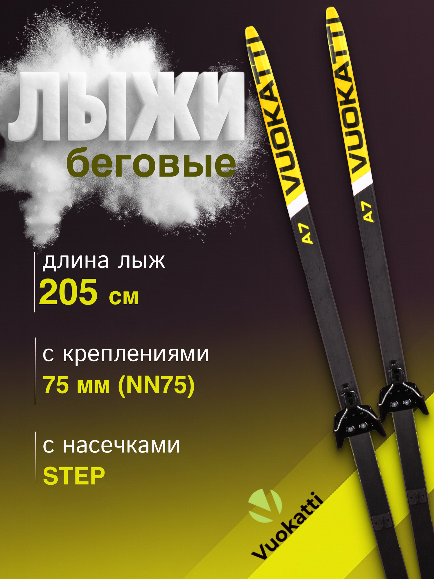 Купить Беговые лыжи VUOKATTI 205 см с креплением 75мм Step Black Yellow без палок с доставкой по всей России.