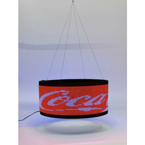 Кольцевая (цилиндрическая) светодиодная рекламная вывеска (бегущая строка) внутри помещения и для улицы диаметр 31,5 высота 12 сантиметров! Легко самостоятельно подвесить, легко изменить без посторонней помощи место положения устройства. Изделие готово к использованию, не требует специальных познаний в сборке и креплении. Управление с телефона (загрузка картинок, вывод текста). Ввиду своей мягкой конструкции и маленького веса безопасен при использовании рядом с хрупкими поверхностями. Питание USB 220 вт. Так же можно подключать от Power Bank). Уникальность заключается в мягком интерактивном дисплее, Дисплей способен транслировать , картинки ( пропорциональные размерам устройствам), тестовую надпись, которую вы с легкостью можете загрузить из мобильного телефона через приложение IOS или Android. Это лучшая возможность рекламировать свои товары не выходя из помещения.