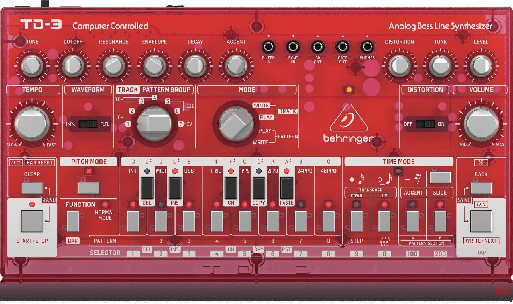 BEHRINGER TD-3-SB Аналоговый басовый синтезатор с 16-ступенчатым секвенсором и фильтрами VCO, VCF и VCA, прозрачный красный: сравнение цен, характеристики, фото, актуальное наличие и цены.